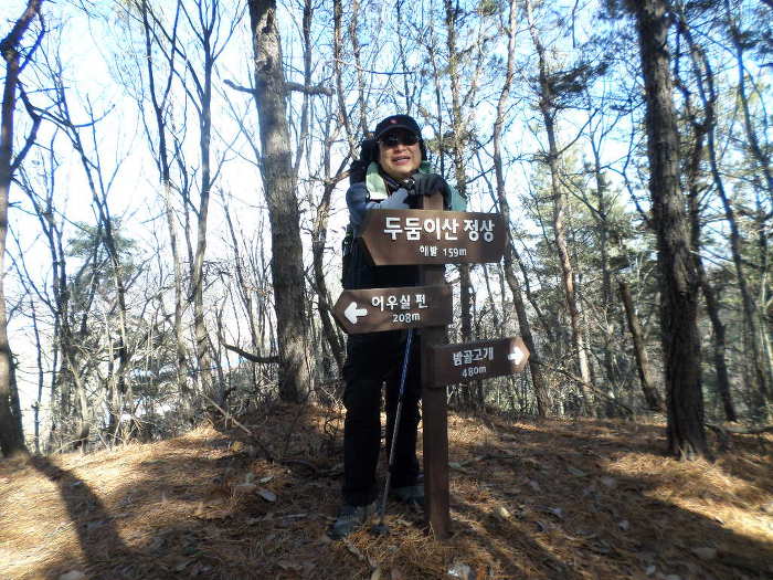 들머리에서 불과 7분만에 우리동네 뒷산보다 더 쪼매한 159m의 두둠이산에서 낯간지러분