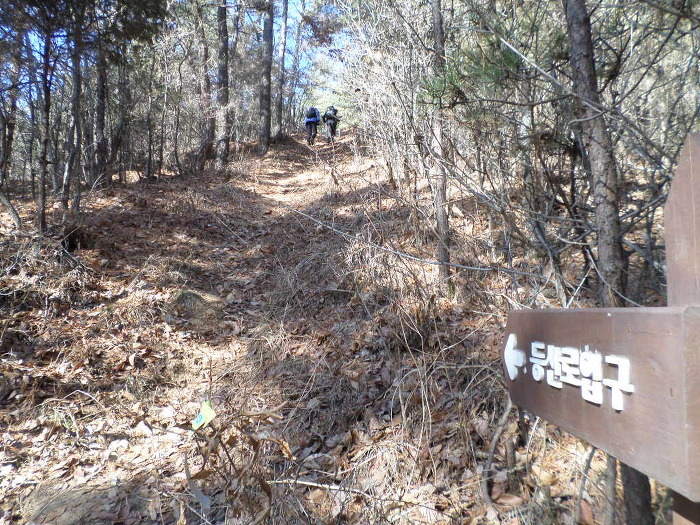 옥녀봉에서 25분여가 지날즈음 개금골삼거리에 도착한다!~개금골삼거리에서는 개금골로 하산하는 길이