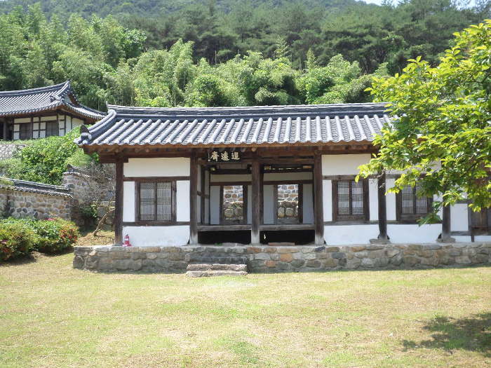 입구에는 독서루 현판이 보이고 올라가미 양쪽으로 유생들이 공부하며 거처하던 부속 건물들이 이름표를