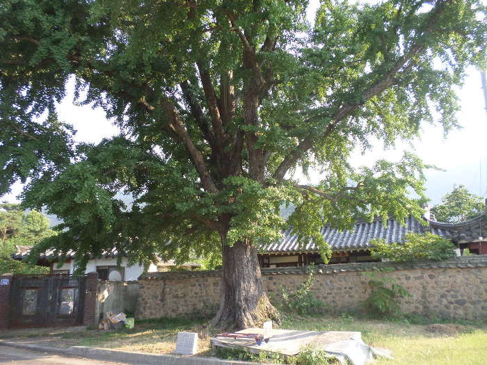 여있는 은행나무 보호수는 김종직 생가 입구에 있는 대빵 큰 느티나무 보호수보다 모타리는 쪼매한데 70살이나
