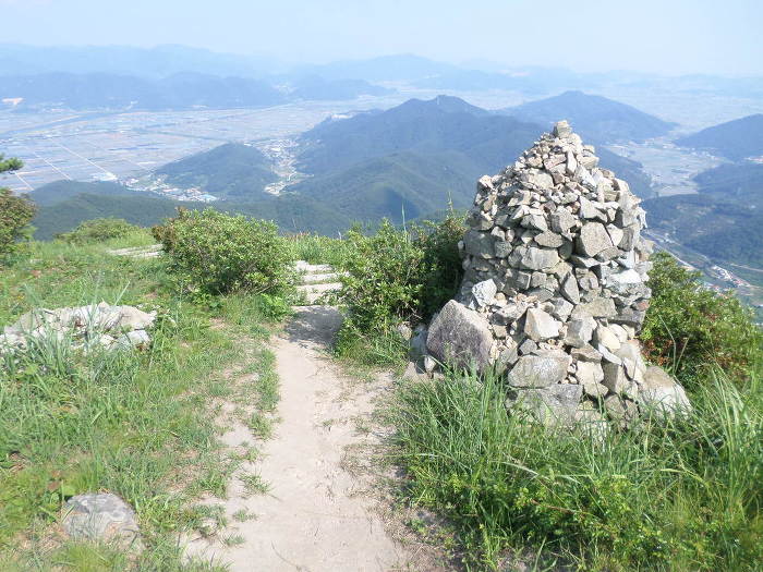 헥헥거리고 올라서면 돌삐가 보이는 곳에서는 오른쪽으로 능선이 휘어져 있다!~