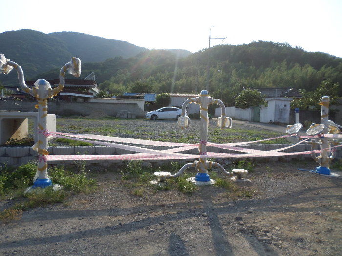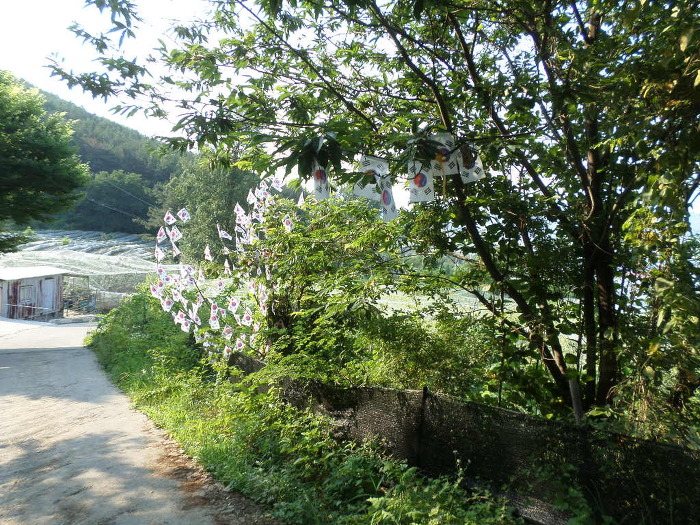 다시 왼쪽으로 틀어 나가는 곳에있는 허름한 집에는 태극기가 주렁주렁 달리 있어가 첨에는 애국자인강 카다가~