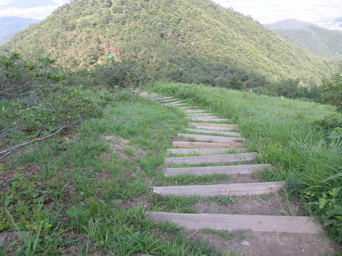 공사한지 얼마 안된듯한 침목 계단이 길게 이어지고~