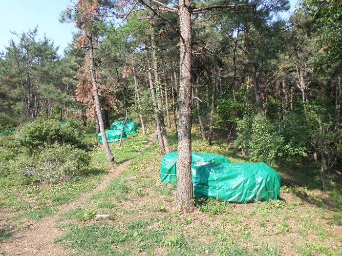 잡풀더미을 헤치고 직진해서 들어서면 표지기들이 더러 보이고 쉬엄쉬엄 올라가면 납딱무덤을 지나~