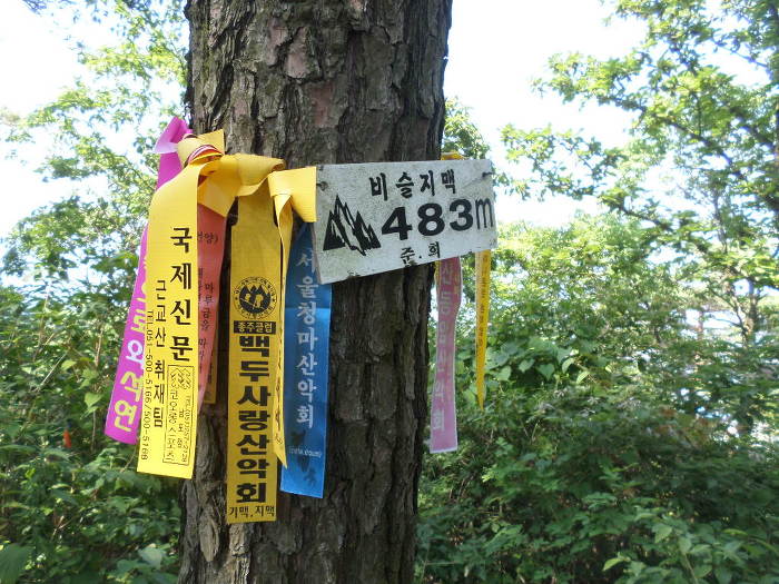 판때기 주변을 삐잉 돌리가 지맥꾼들의 표지기가 무당집 입구처럼 널리있다!~