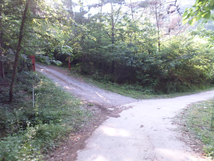 포장 임도를 따라 터덜터덜 내리가마 미덕사 판때기가 보이는 곳에서 오른쪽으로 휘어져 내리가는 갈림길이
