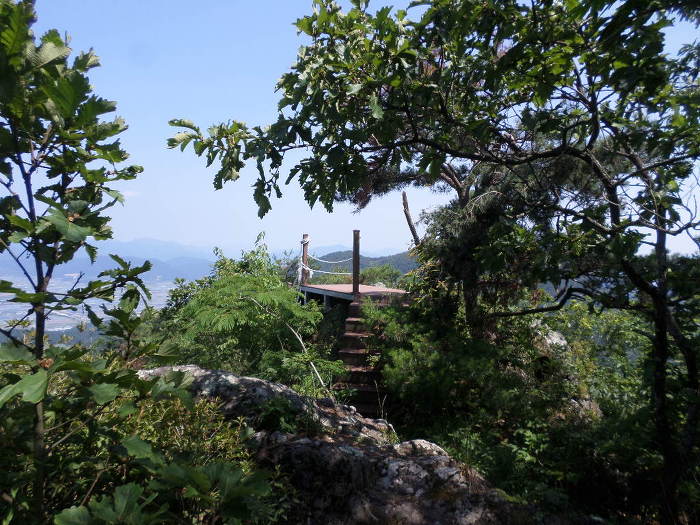 잠시 진행하다 보면 목계단 우에 쪼매한 전망대가 나타난다!~