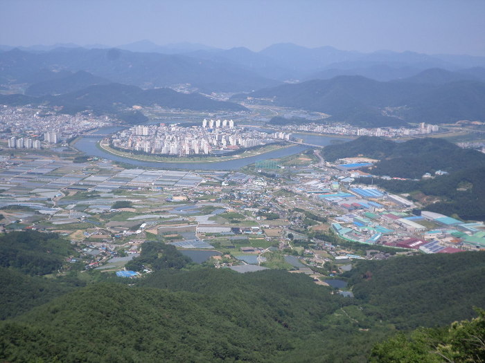 왼쪽으로 하산 지점에 있는 공장지대와 그 오른쪽에 숨어있는 골프장도 꼬랑지를 살짝 보이고~