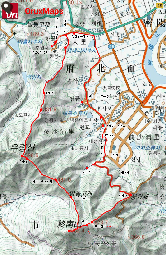 얼마전 국제신문에서 답사한적이 있는 밀양 우령산~종남산 코스가 힘도 마이 안들고 시간도 4시간 반 정도되는