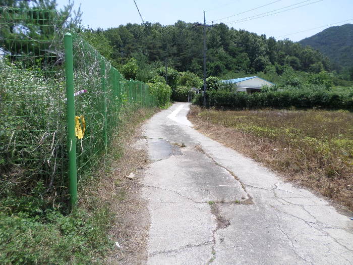 왼쪽으로 밀양농협물류센타 건물이 바라보이는 포장 도로를 따라 올라서면~