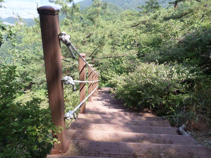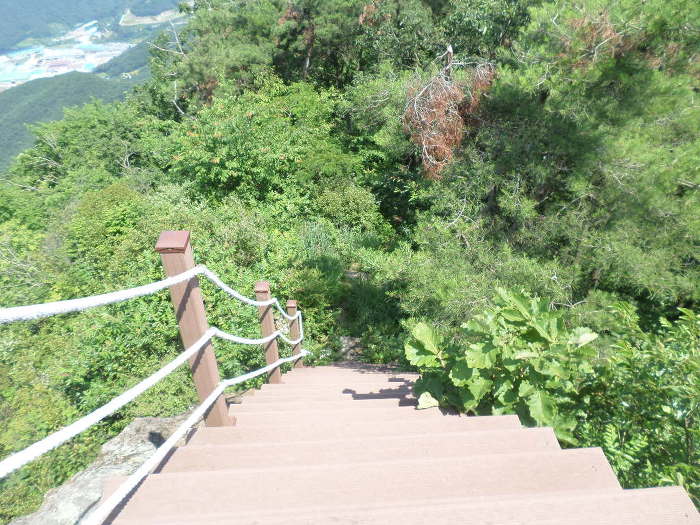 다시 가파른 목책 계단을 내리오는데 전에 내가 내리오미 콤파스 짧은넘은 가랭이 째지겠다 카미