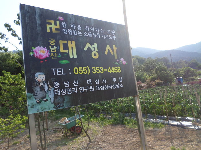 도로를 따라 내려오다 문패를 보니 아까 독경소리가 들리던 곳이 대성사라 카는 절인갑다!~ 문패에는 어느