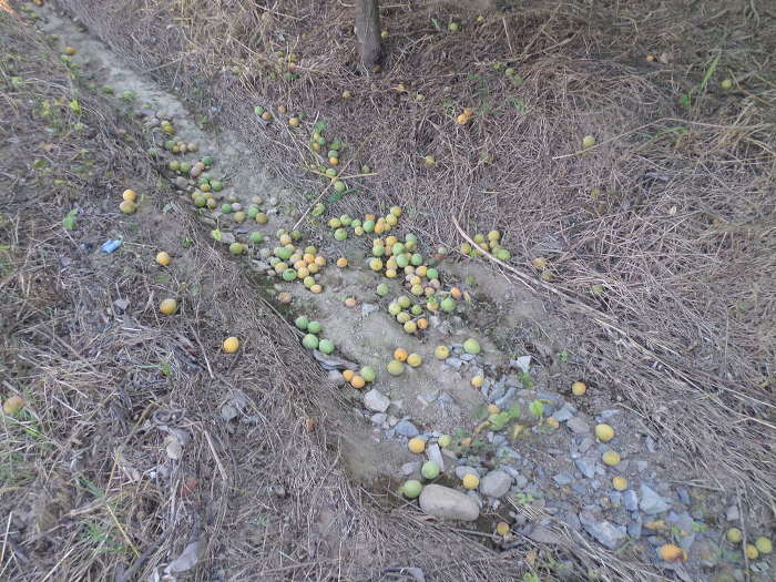 땅에 수북히 널쪄가 있는 저거는 복숭 새끼인지 매실인지!~