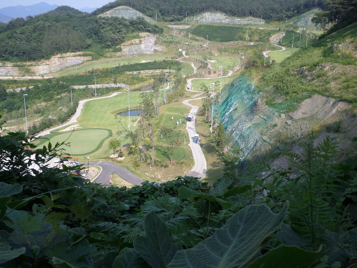 성주 도씨 숭모원 표석을 지나면 아래쪽 규모가 쪼매 작은 골프장에 평일인데도 몇몇팀들이 굿샷!~
