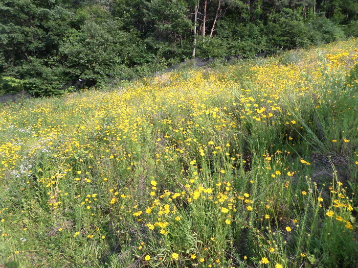 돌아 내려서는 오른쪽 사면에는 온통 노란색으로 황칠을 해났따!~ 아래쪽 공터에서 오짐을 누던 아저씨는