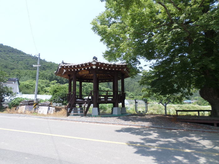 직진해서 마을길로 들어서면 수령이 230년 자싰다 카는 덩치큰 느티나무 할배 옆에 쉼터 정자가 보이길레