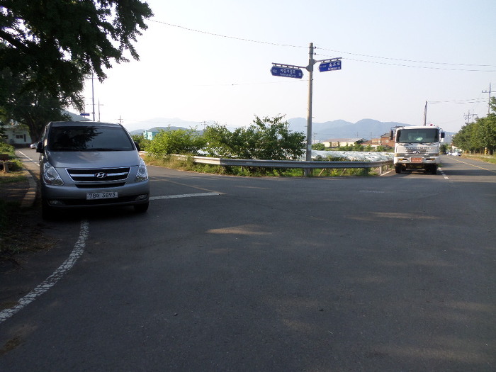 송악과 제대리저수지를 차례로 지나 도로로 내려선지 1시간이 막지난 시각!~다시 밀양농협물류센타에 도착했다!~