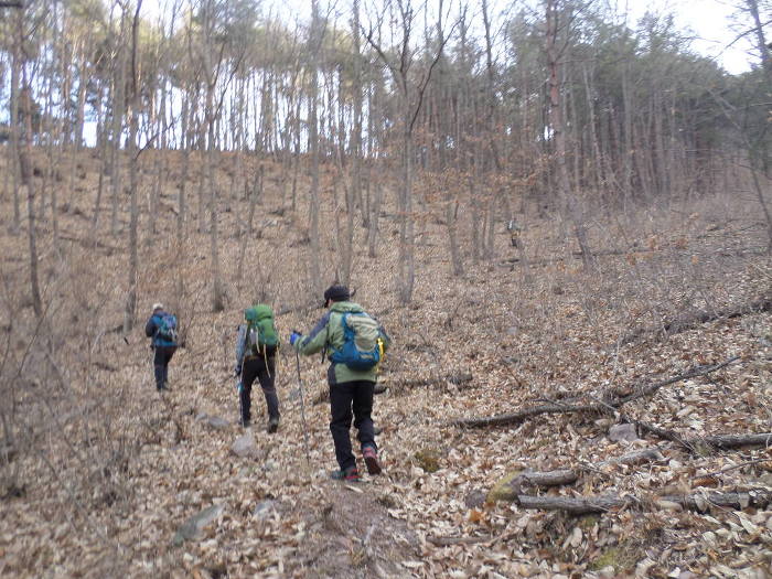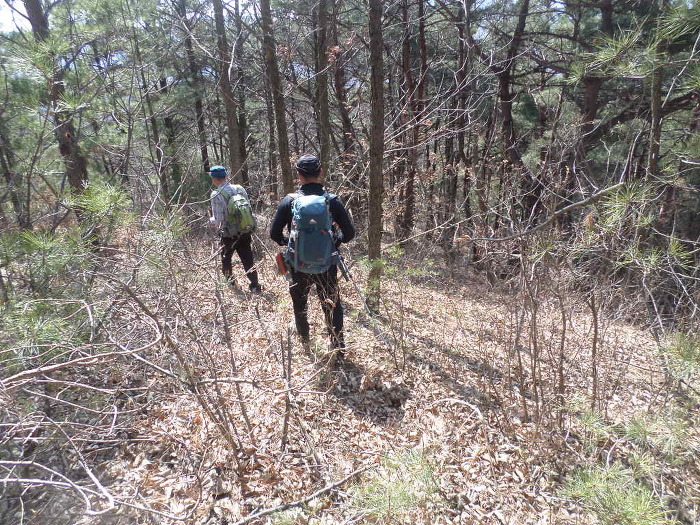 인제는 하산!~ 남쪽으로 꺾어 내리간다!~ 길은 없다고 바야된다!~ 남쪽 방향만 잡고 내리간다!~