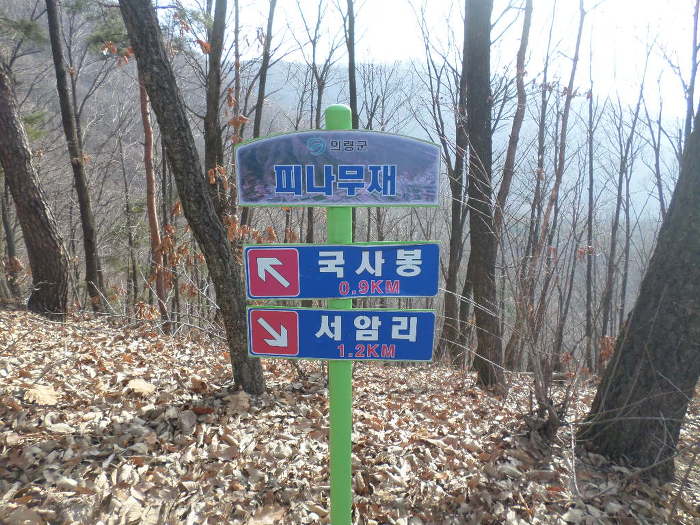 이정표가 국사봉 0.9km를 가리키는 왼쪽 방면으로 올라간다!~ 계속되는 오름길이다!~