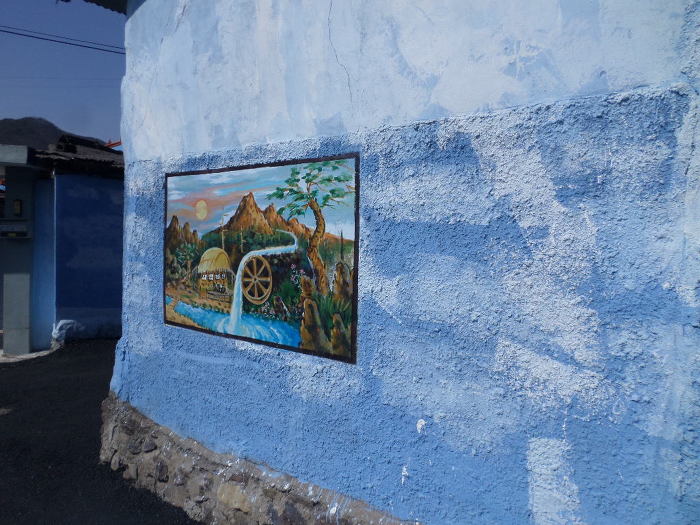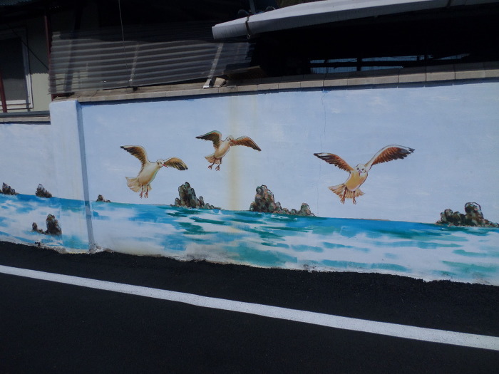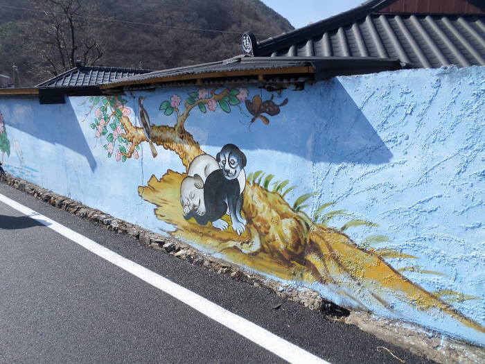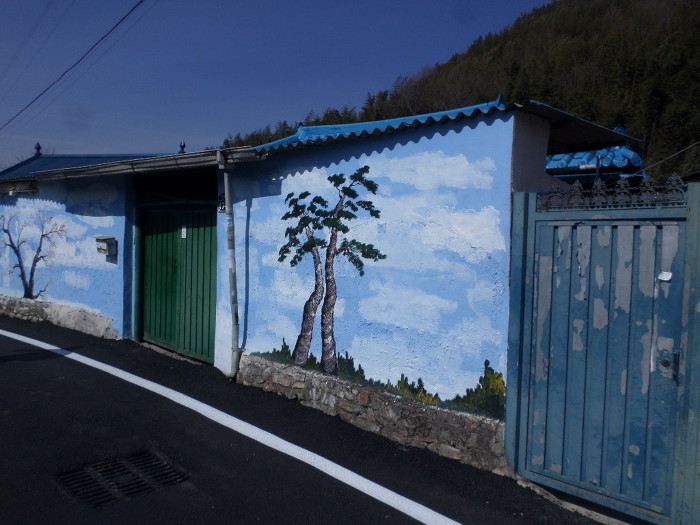 여도 벽화마을이가?~ 담삐락에는 쭈욱 내리가미 전부 이발소풍 그림이다!~