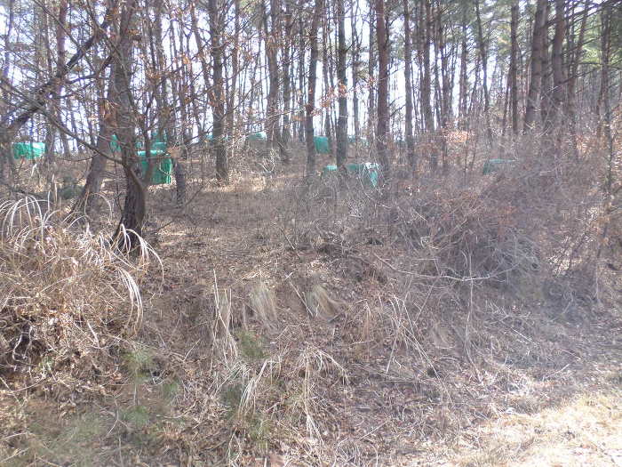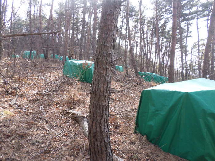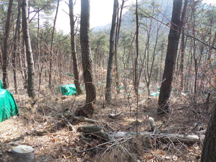 공동묘지다!~ 농약으로 흔증처리한 녹색 비니루가 봉산 오름길을 도배해났따!~
