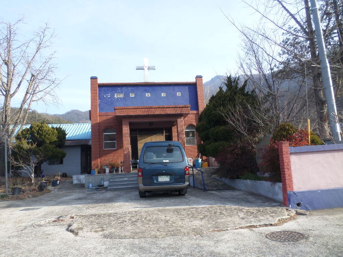 도로를 따라 잠시 나오다가 삔침처럼 티올라온 서암교회 십자가 첨탑이 보이마 왼쪽 마을 안으로 들어선다!~
