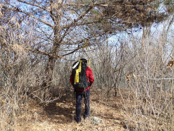 깔끔성 봉황새가 와 내 이름을 파노 칼 정도로 조망없고 잡목투성이인 짱배기에 맹글어온 표지기를 잡고 한컷!~