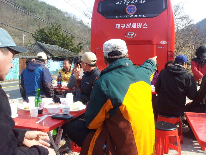 앞에 아저씨도 다른 산악회 회장님이라 카는데 디기 열성이다!~ 대포 카메라를 가나와가 막찍어 재키끼네