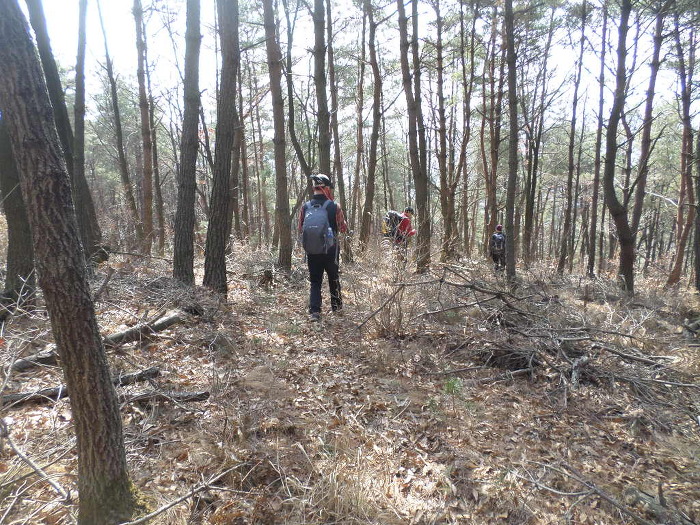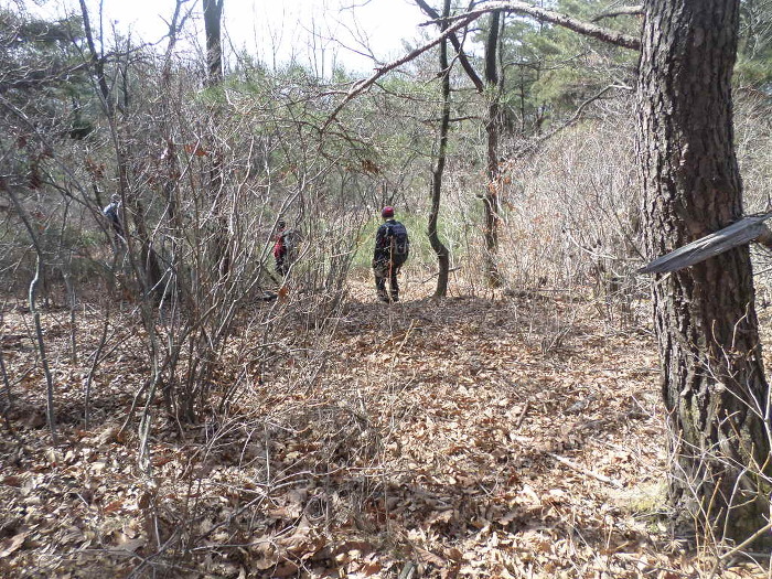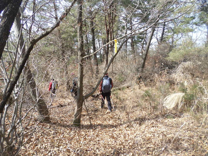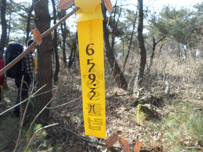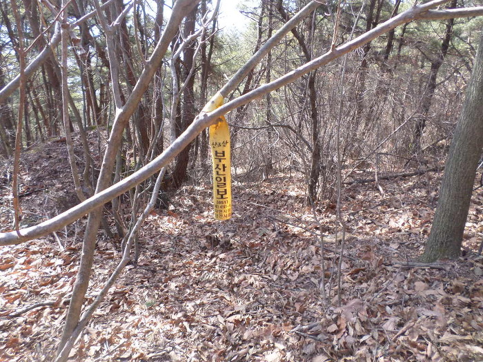 까시잡목을 이리저리 빠져 나오면 부산일보 표지기와 부산쪽 산악회 표지기도 드문드문 보이고~