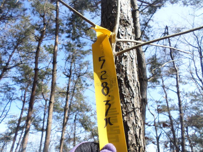 잠시후 528.3봉으로 올라선다!~ 거칠고 가지 능선이 많은 길이라 후답자를 위해 현위치 표시를 해논는다!~