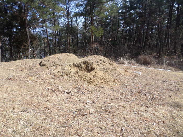 받았는지 봉분이 반틈 날라가고 없다!~
