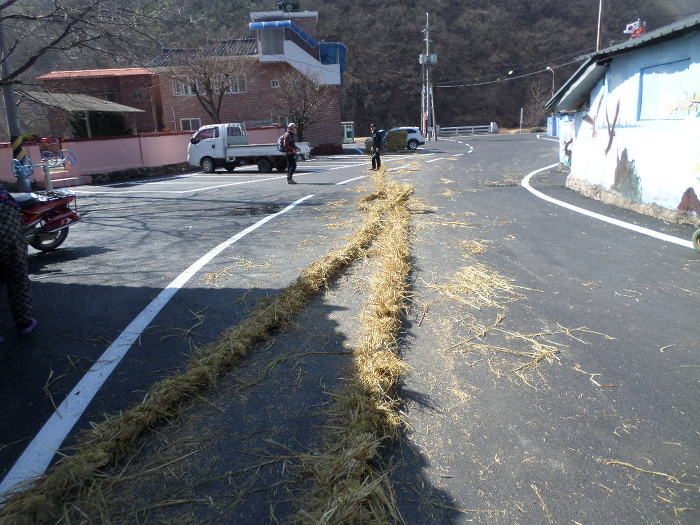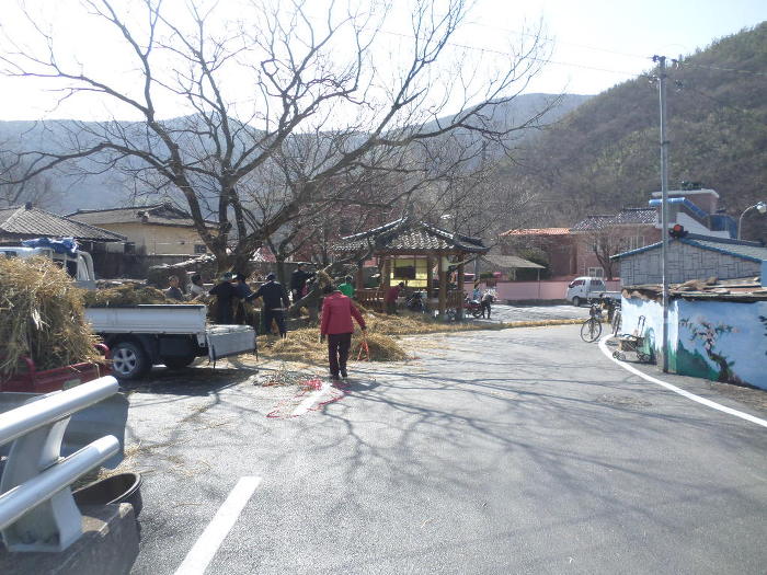 새끼줄을 지다라이 늘어났따!~ 동네 남녀 주민들이 다모디가 열씸열씸인걸 보이 마을에 큰행사인듯하다!~
