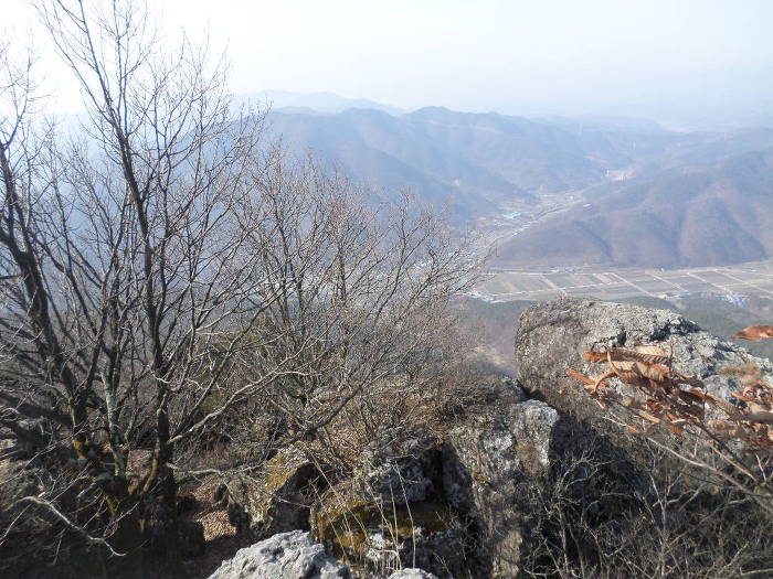 오른쪽으로 국사봉 줄기가 바라다 보이고~ 저쪼 가운데 쏙 드가있는곳이 피나무재지 시푸다!~