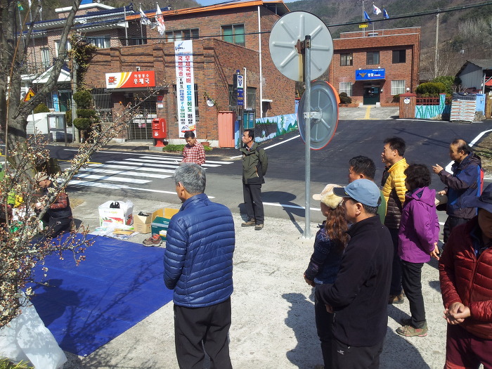 저쪼 마을 정자에서 주민들이 모디가 무신 작업을 하고있따!~