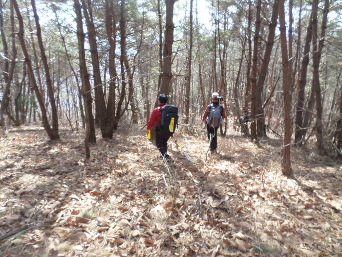 술취했는교 카미 머라칸다!~ 놀래가 후다닥 왼쪽 능선으로~ 그런데 여서부터 봉산까지는 완전 소나무
