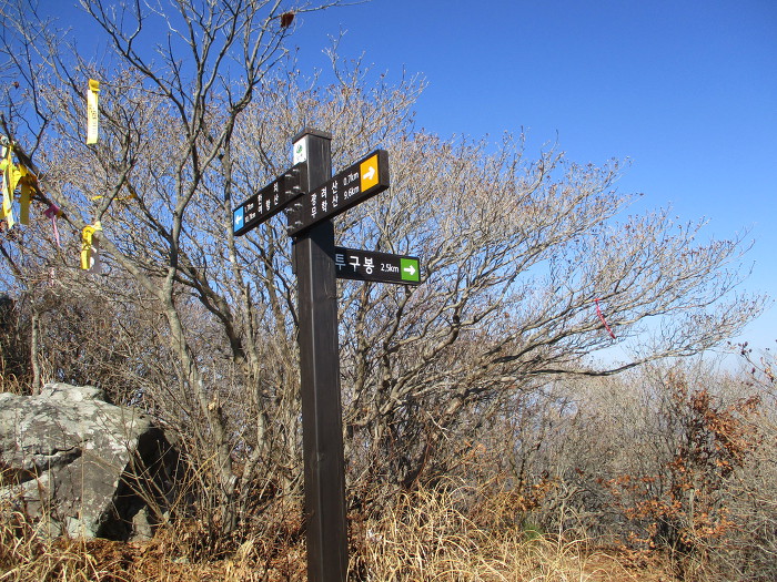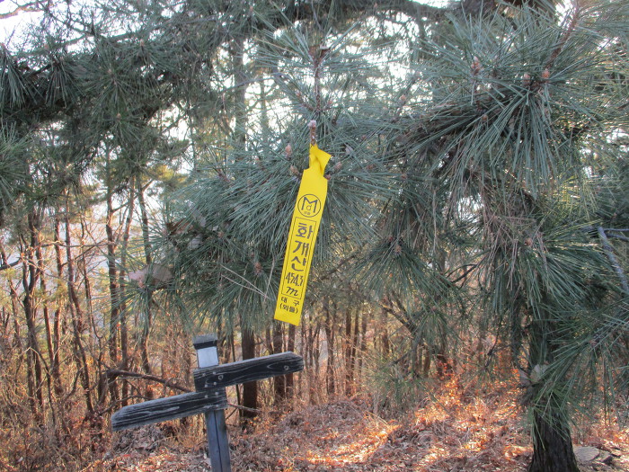 밋밋한 봉우리에 올라서니~ 이정목이 화개산은 안직 2.5km를 더 가야된다 칸다!~ 화개산이 생각보다 마이 머네~
