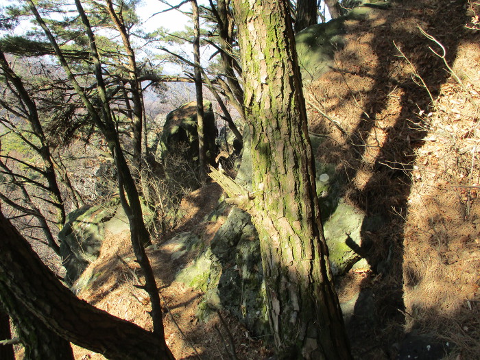 가파르게 올라선 봉우리에는 가지많은 나무가 지키고 있고~ 이 산의 특징은 봉우리에 올라서마 어김없이