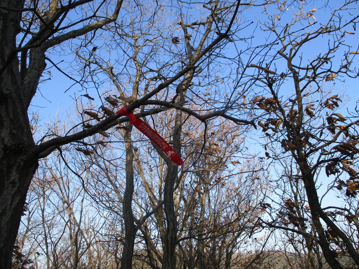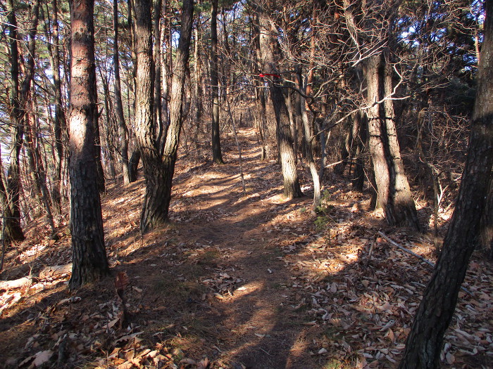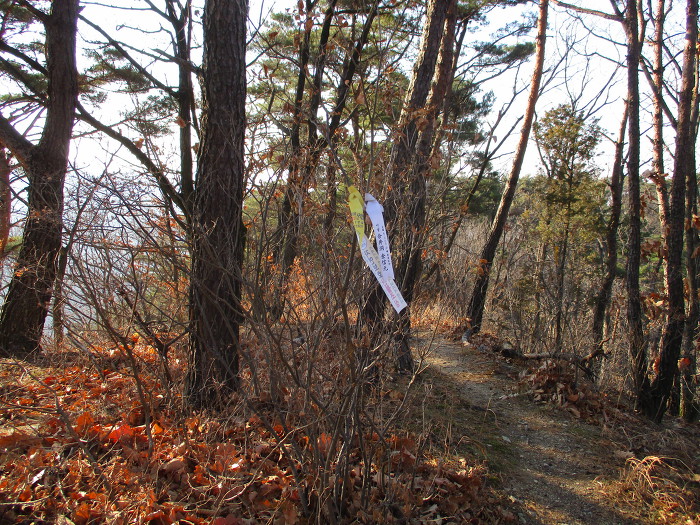 다시 쉬엄쉬엄 밋밋한 봉우리에 올라서이 걸리있는 표지기가 송전탑 표지기다!~
