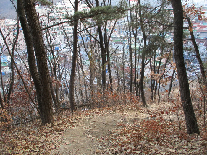 띠바!~ 급한데 내리가는 길이 디기 가파르네~ 땀을 삐질삐질 흘리미 후다닥 띠니리가다 보면 알로