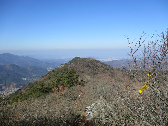 오른쪽으로 돌아서이 광려산 짱배기가 불쑥 티 올라와가 있다!~ 여는 대산과 광려산의 안부인 셈이다