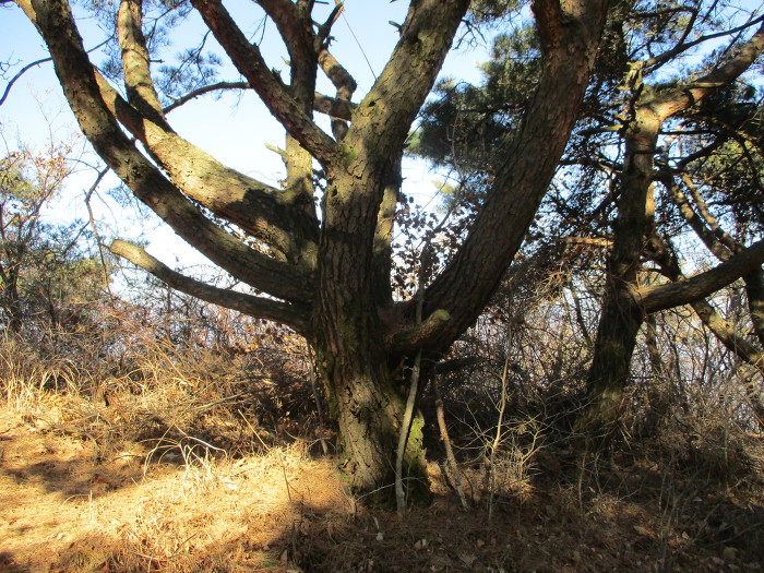 잡목들을 깨끗하이 면도를 해논것 같은 일산재에 내려서고~ 저 노거수가 대장인 모양이네~ 안부에는 화개산이