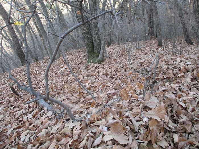 무릎까지 올라오는 낙엽은 조심스럽다!~ 발밑 상황이 우예 되가 있는지 가늠하기 어렵기 때문이다!~