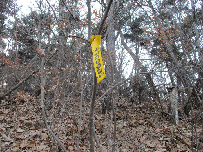짱배기에는 표지기가 하나또 안보이가 근처에 있는 솔까시를 닥터레기 뽑듯 뽑아내고 국토지리원 고도 표시를 한