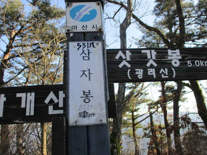 가차이 가보이 요는 구체적으로 광려산,삿갓봉,상투봉이라꼬 적어노코 오른쪽으로 손가락질을 한다!~