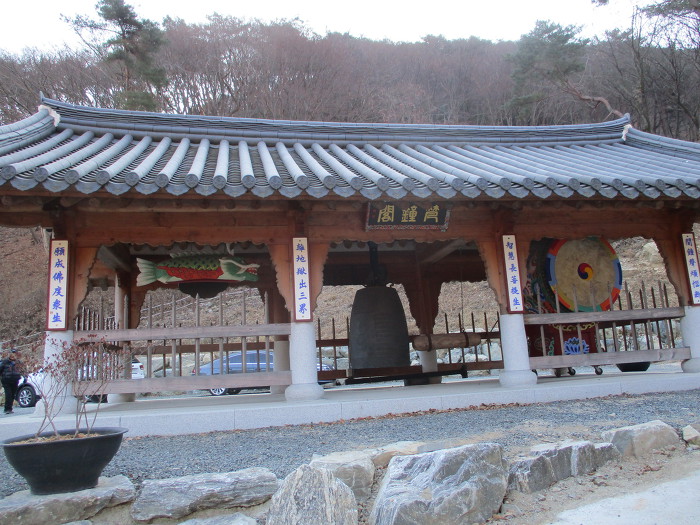 다시 빠꾸해가 광산사로 올라간다!~ 왼쪽에 범종각이 보인다!~ 불전사물(佛前四物)은 범종,구름모양 판때기 운판,