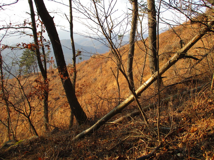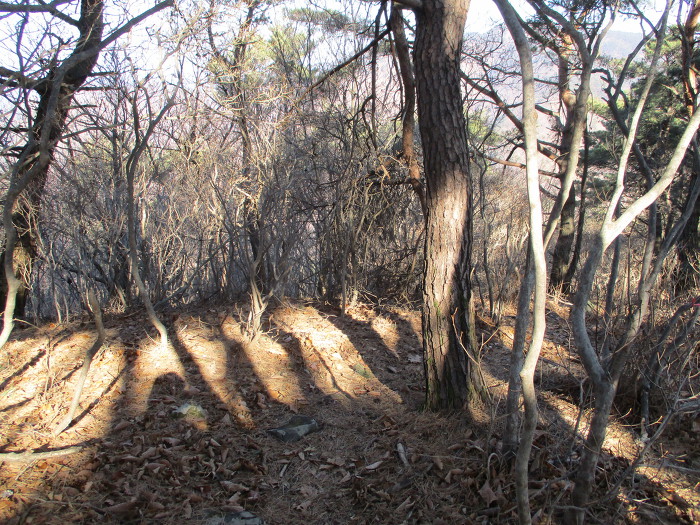 가파르게 올라가다보이 산등성이가 전부 맹탕이네!~ 불이 났나?~