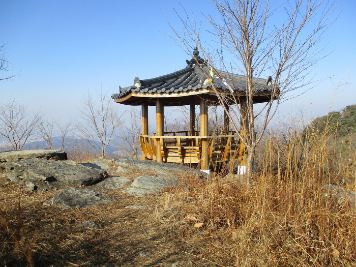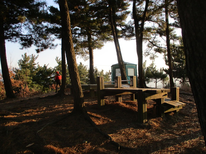 정상에는 귀한 2등 삼각점이 안자있고 평상 쉼터도 보인다!~