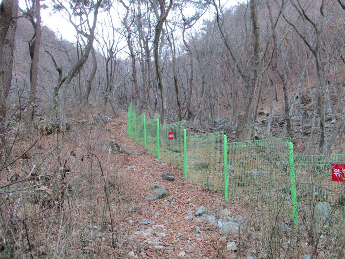 오른쪽 계곡물 깊이가 5m는 되가 푸덩덩하마 깨꼴락한다 카는 꽁까 경고문이 걸리가 있는 철망 팬스를 지나이~