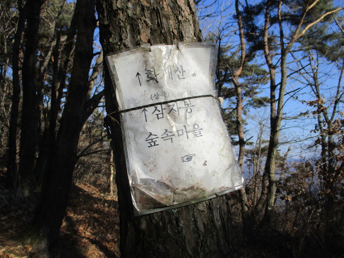 가지많은 나무가 서있는 곳으로 몇발자국 진행하마 오른쪽으로 갈림길이 보이고~ 준.희님의 화개지맥 419m