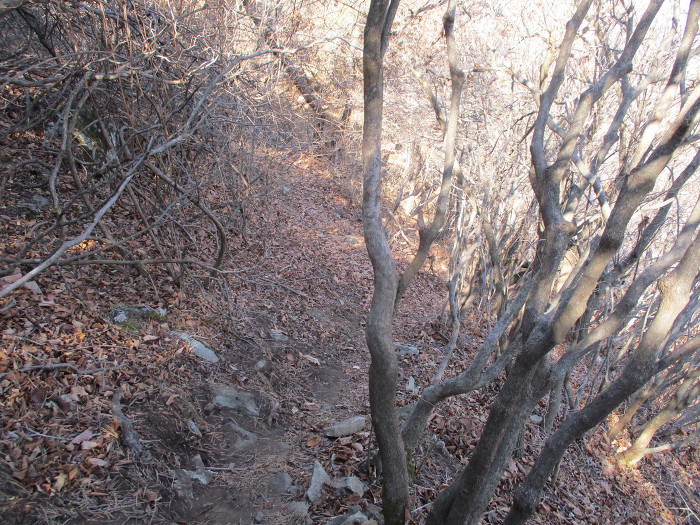 불나고 올라오는기 전다지 까시넝쿨이라 그런지 길을 왼쪽 사면으로 삐딱하이 내났따!~ 여도 선두에서 전지를